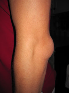 That's what a normal elbow is supposed to look like! I was horribly grossed out by the whole thing. He went to the doctor and they said it's just bursitis. Apparently he puts too much pressure on his elbow. Since none of you actually get to sleep with him, you might not know this, but he reads before he goes to bed. Usually, he puts all his weight on one elbow while he's reading. Sometimes he falls asleep like that and will lie there for hours! No wonder it's so messed up! It's doing much better already. Thank goodness for doctors.